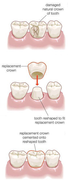 To provide a crown, the tooth to be restored is prepared by a dentist with enough reduction for the new crown to have enough space on all five surfaces.